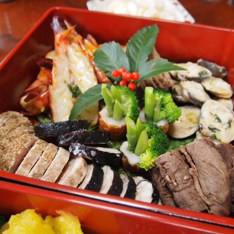 だから、おせちというよりも、唐揚げとか、とんかつとか、行楽弁当みたいになるんですけどね(笑。