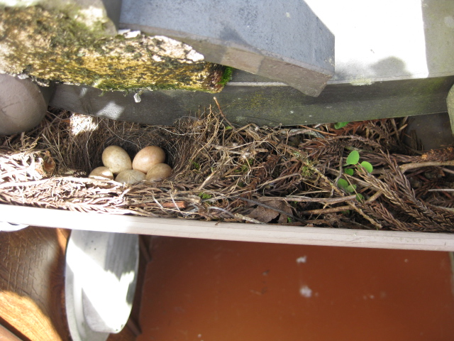 この梅雨時に、どうしてここに巣作りしたのやら。