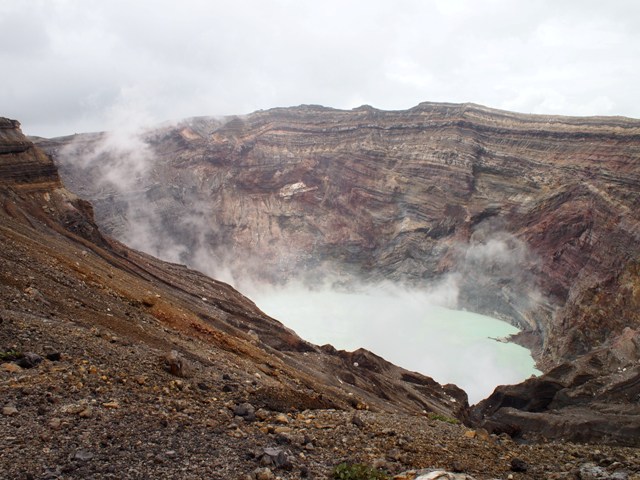 火口からは煙が上ってて、今まさに活動してる火山なんだって実感。